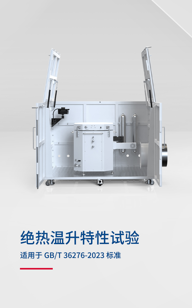 符合 GB/T 36276-2023《電力儲能用鋰離子電池》“絕熱溫升特性”實驗標準,可滿足600mm以內電池單體以及小型模組的熱安全測試需求。